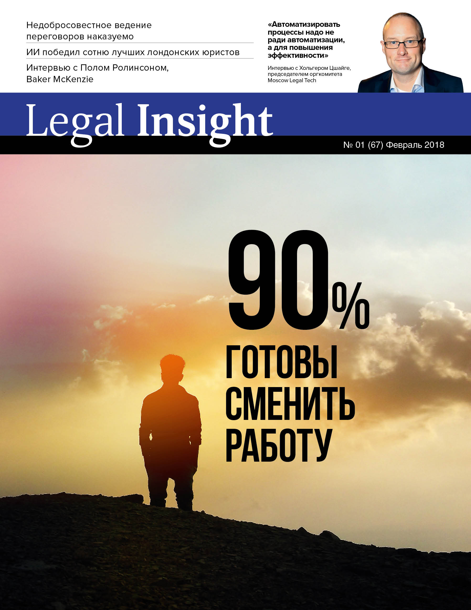 Об изменениях, которые происходят в сфере оказания юридических услуг под влиянием диджитализации, в этом номере мы беседовали с Джоном Мейсоном, руководителем отдела регуляторной и рыночной структуры Thomson Reuters; Полом Ролинсоном, глобальным председателем совета партнеров Baker McKenzie; Людвигом Буллом, одним из основателей стартапа Case Crunch, Хольгером Цшайге, председателем оргкомитета Moscow Legal Tech, которая состоится 19 и 20 апреля.