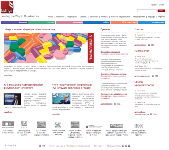 «Яркий и насыщенный информацией сайт Lidings отличает привлекательный дизайн и безупречный английский язык. Сайт содержит полные контактные данные всех юристов фирмы, а также предлагает возможность контекстного поиска по списку клиентов и предлагаемых услуг, областям практики и секторам индустрии. Фирма также предлагает аудитории пресс-релизы, публикации и иные информационные материалы, формирующие интеллектуальное лидерство», — отмечают авторы исследования.